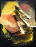 Bij de vereniging noem ik het wel mijn 'niets'schilderijen. Dit is natuurlijk niet helemaal waar, ook waar ik geen direct herkenbare vorm geef ontstaat een werk met voorstelling. Het is structuur, decoratie of denkbeeld.