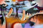 2009Het linker van een drieluik. Het middelste doek is ontstaan tijdens een enkele jaren geleden ontdekte ziekte. hieromheen geprobeerd de omgeving uit te beelden. Hier het eerste doek